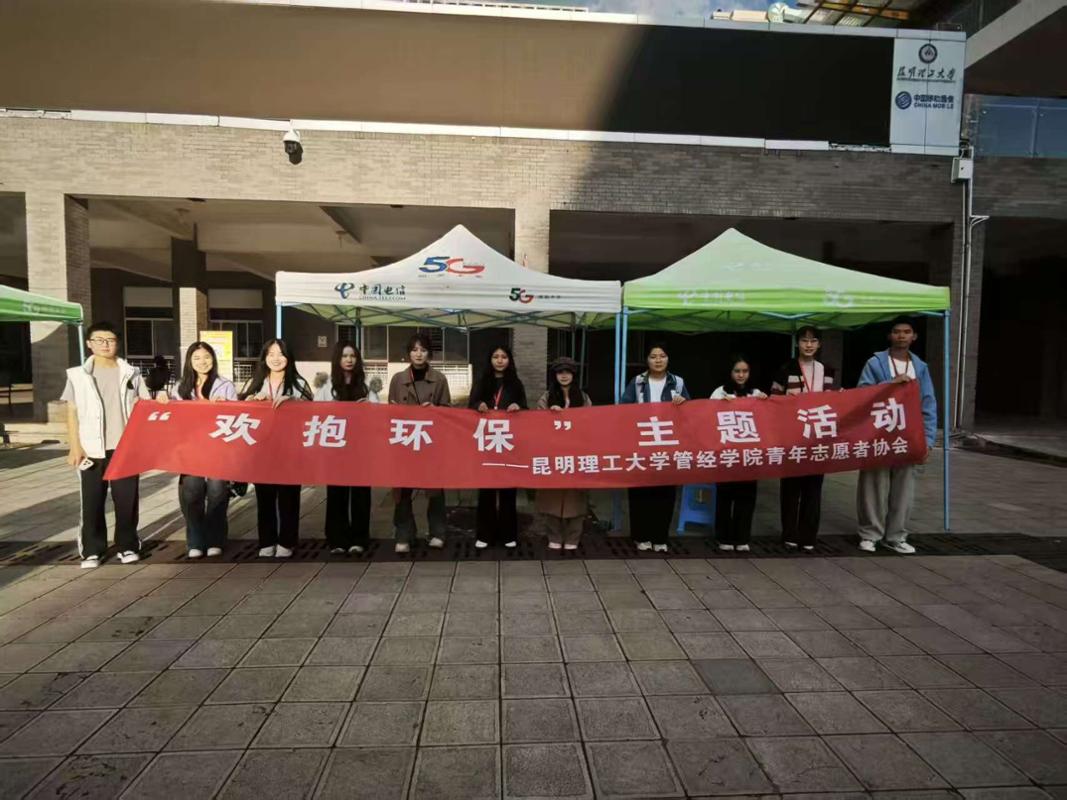 10月26日,昆明理工大学管理与经济学院青年志愿者协会在怡园小广场成功举办“欢抱环保”主题活动,全院共计561名同学参加此次活动。