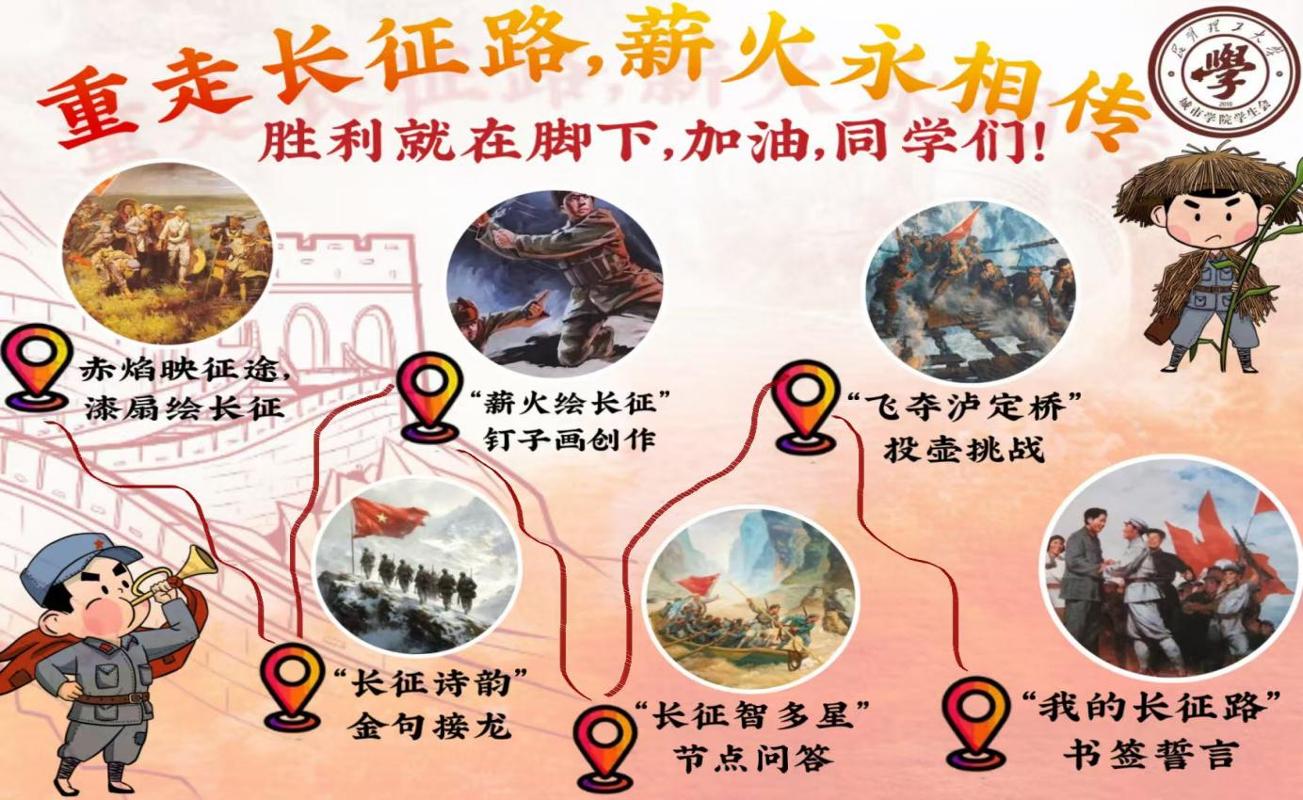 “每一代人有每一代人的长征路。”本次主题活动以青年喜闻乐见的形式,让长征精神“活”起来、“潮”起来,将长征历史与互动体验深度融合,让同学们在实践中深化对长征精神的理解,推动红色文化入脑入心,为青年学子走好新时代“长征路”注入精神力量。本次活动激励城院学子从革命先辈的奋斗历程中汲取力量,不忘初心、牢记使命,在新时代的长征路上奋勇前行。
