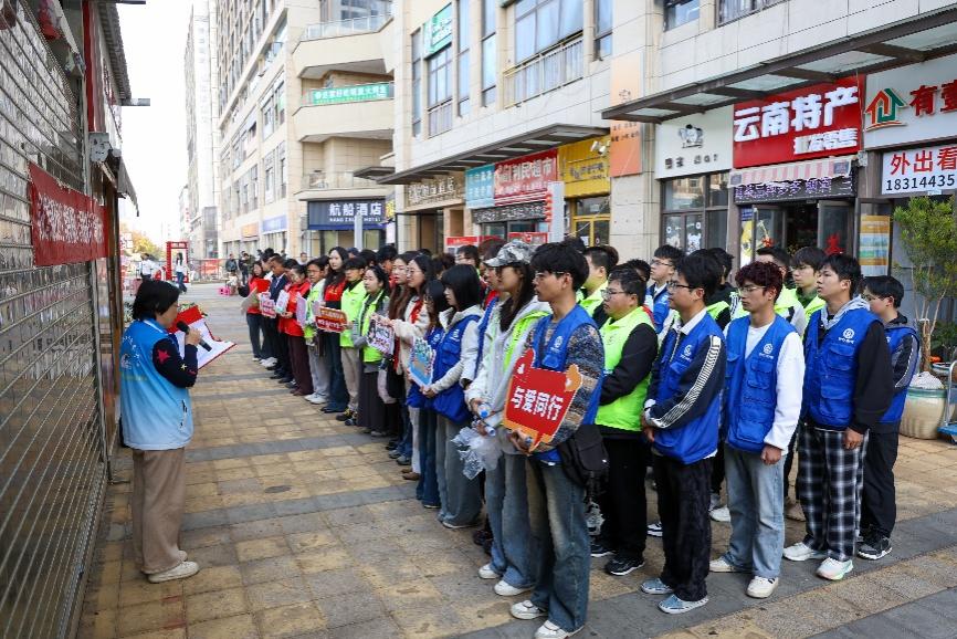 团员志愿者们在社区工作人员安排下,分工明确并迅速进入状态。打卡送鲜花环节,志愿者们主动向过往居民讲解雷锋事迹,解答活动流程中的疑问,并引导群众参与践行雷锋精神。环境卫生整治阶段,志愿者们分成3个小组,携带扫帚、抹布、小铲子等工具,重点对社区商圈、主干道开展大扫除,并同步推进盲道清理工作,大家分工协作、配合默契,细致铲除墙面、电线杆上的小广告,清理盲道上的碎石与杂物,不留卫生死角、不留清理盲区。