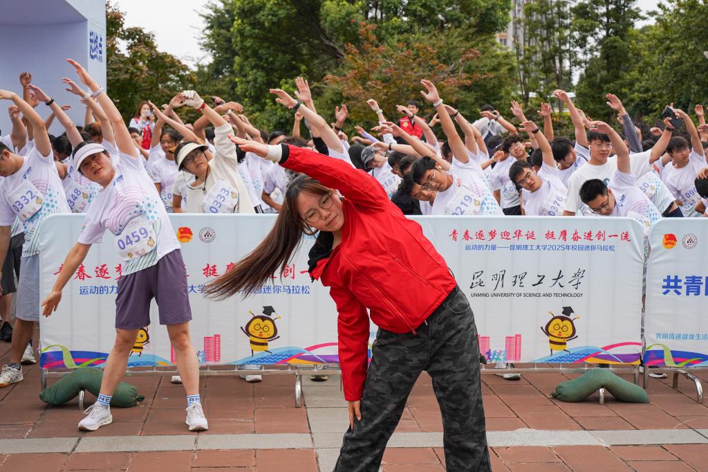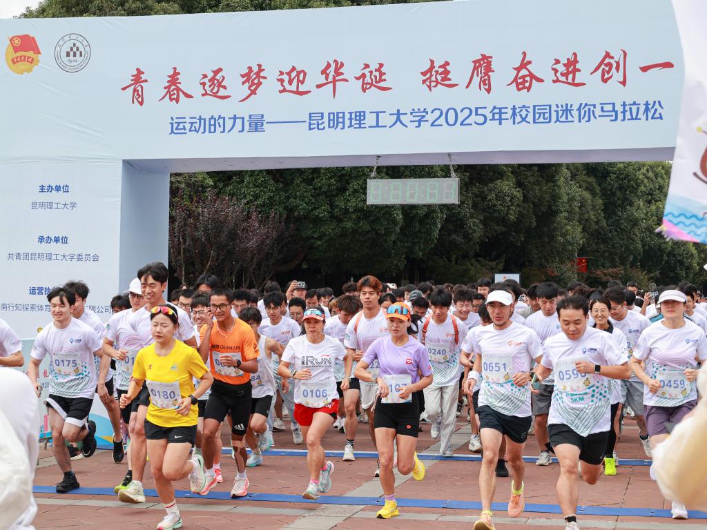 为热烈庆祝中华人民共和国成立76周年,弘扬伟大爱国主义精神,营造爱国奉献、团结奋进的浓厚氛围,引导广大师生在运动中强健体魄、磨砺意志,9月29日下午,“青春逐梦迎华诞 挺膺奋进创一流”运动的力量——昆明理工大学2025年校园迷你马拉松在呈贡校区举行。校党委副书记陈华仙出席活动并为比赛鸣笛发令,1000余名参赛师生燃情开跑,用奔跑奋进之姿迎接伟大祖国76周年华诞。